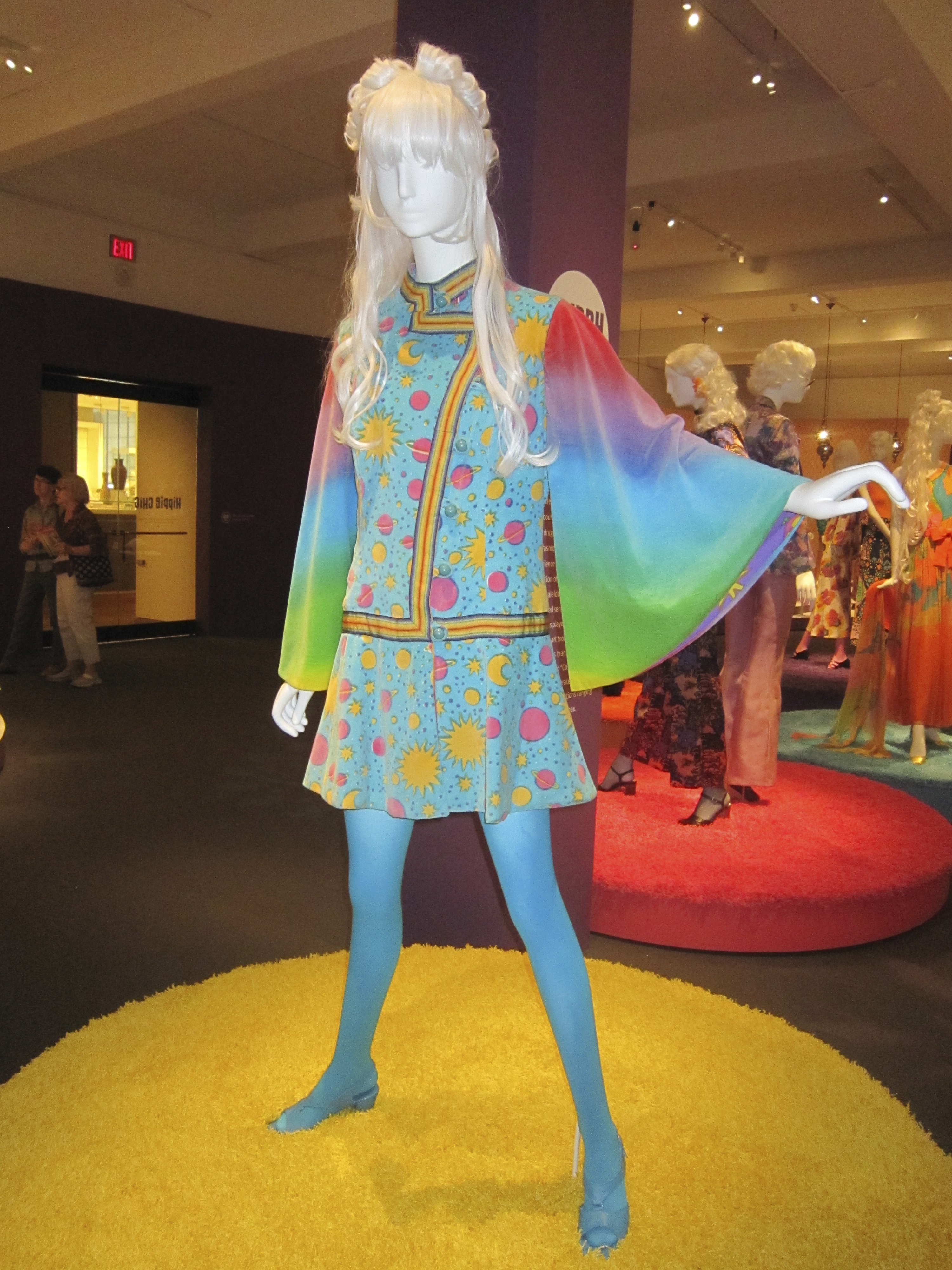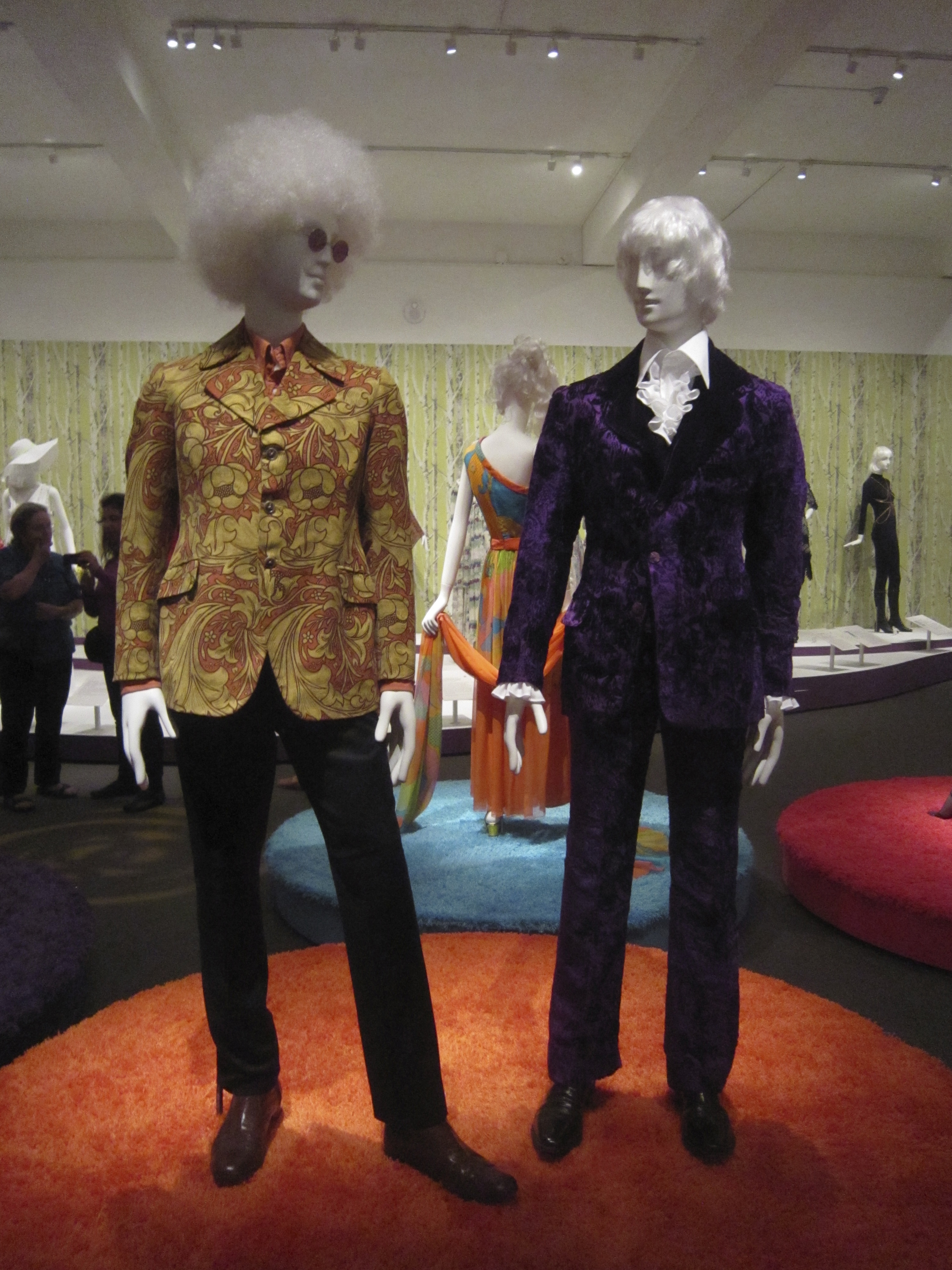 My appetite had been whetted by adverts all around town for the ‘Hippy Chic ‘exhibition currently showing. I have hippy credentials, but you know how they say ‘if you remember the 60s you obviously weren’t there?’ That doesn’t really apply to me. I remember them well. I did my best to conform with the non-conformity, I even inhaled, but only socially, like I might share a bottle of wine with friends now. It wasn’t a lifestyle choice to live in a fug of marijuana and procrastination. I had too many nappies (diapers) to change. I had my first baby when I was 23, and like to think I was a responsible mother. I breastfed, but only till they were about 6 months old, not until they could toddle up and ask for it before they went to school. I thought at one time it would be interesting to try LSD, but only if a responsible person would mind the children for 4 days. I couldn’t find one. Then I looked up the effects of LSD in one of my father’s medical books and found it produced a so-called ‘pink spot’ in urine just like they find in schizophrenics. That was enough to put me off. I don’t suppose a real hippy would have been. However, it does mean any comments I make about the exhibition are from someone who had a clear perception at the time. Now, honestly, did any of the people you know look like this?